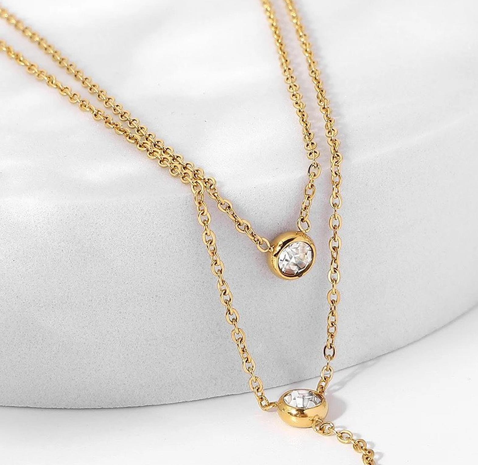 Add a touch of glamour with this layered 18k gold-coated necklace that sparkles with every movement.